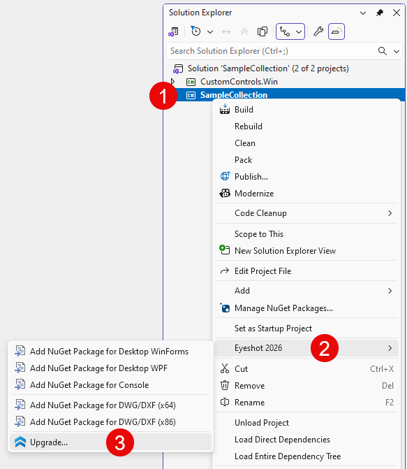 Warning This is a preliminary and work-in-progress version of the official document. --> Warning We recommend taking a full backup of your project(s), including your existing Eyeshot 2025 NuGet packages. Single project updateTo migrate a single Eyeshot 2025-based project to Eyeshot 20…
