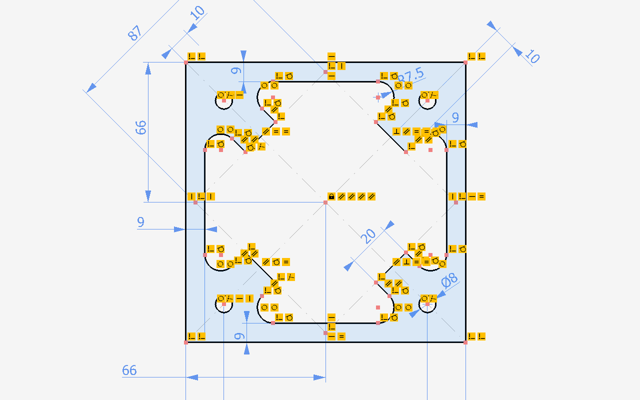 Eyeshot 2022 includes a professional 2D constraint solver that can be used for different purposes: individual 2D parametric sketches, mechanism design, adding features to existing BRep objects and history based parametric modeling.