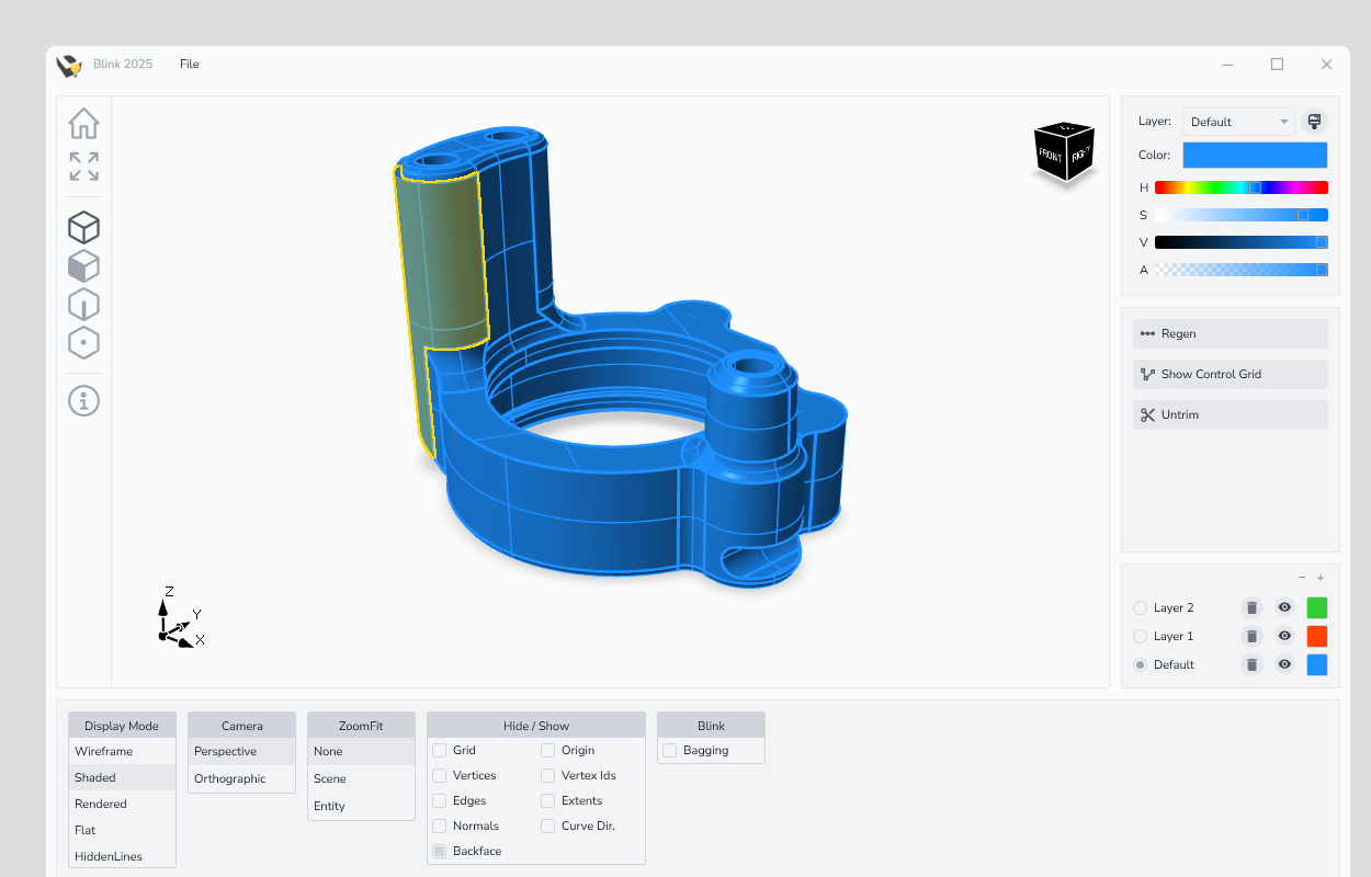 This tool enables the plotting of any Eyeshot entity directly from the Visual Studio Watch window, Immediate window, or within code. It also supports various geometric data types, including points, planes, vectors, and analytic surfaces. Furthermore, the Blink debugging tool is compatible with any IDE, such as JetBrains Rider, allowing for seamless integration across different development environments.